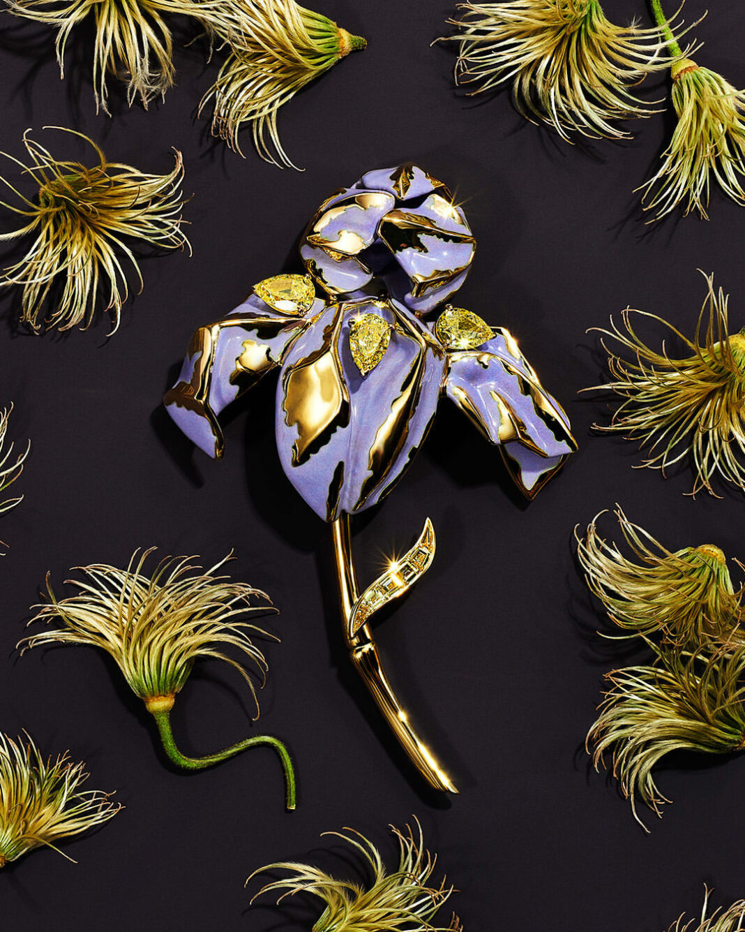 The Iris Brooch is an ornate, new fashion accessory from Tiffany and Co. This swanky little jewellery features 18k gold petals accented with lilac enamel and Fancy Intense Yellow diamonds. It took Tiffany and Co nearly two years to develop this intriguing piece with a new technique that makes the flower appear as if it were folded by hand. The brooch is both stylish and ritzy.